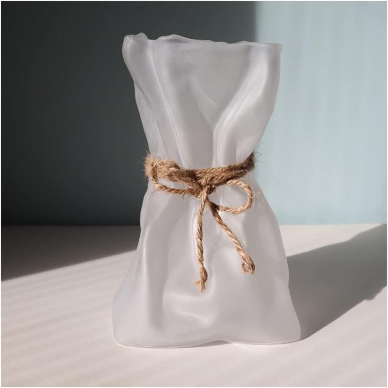 Paper Bag Vase Crinkle Wide Ceramic Flower Vase for Decorative White Cute Bud Vases Aesthetic Unique Bookshelf Decor Flower Arrangement Boho vase for Centerpieces 8 Inches(Glossy White)