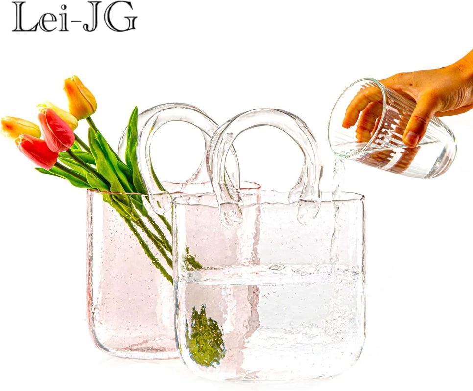 Purse Vase for Flowers Clear Glass Bag Vase Unique Flower Vase Decorative Fish Bowl Handbag Cute Vase Bubble Wide Mouth Vase for centerpieces Home Wedding Decor