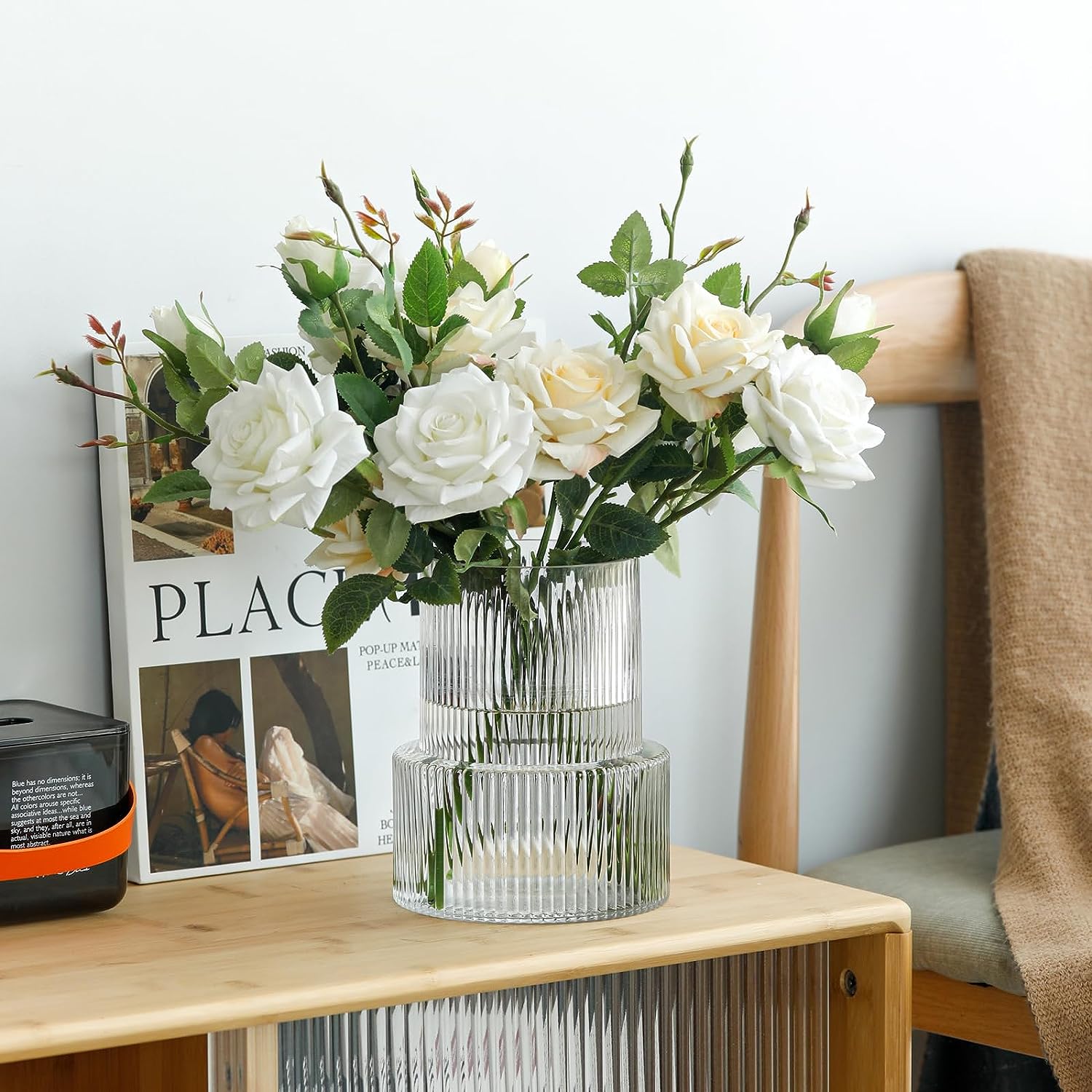 Clear Glass Vase, Flowers Vase for Centerpieces, 7.5 Inches Ribbed Large Vase for Flowers, Decorative Modern Crystal Glass Vase for Living Room Kitchen Office Wedding.