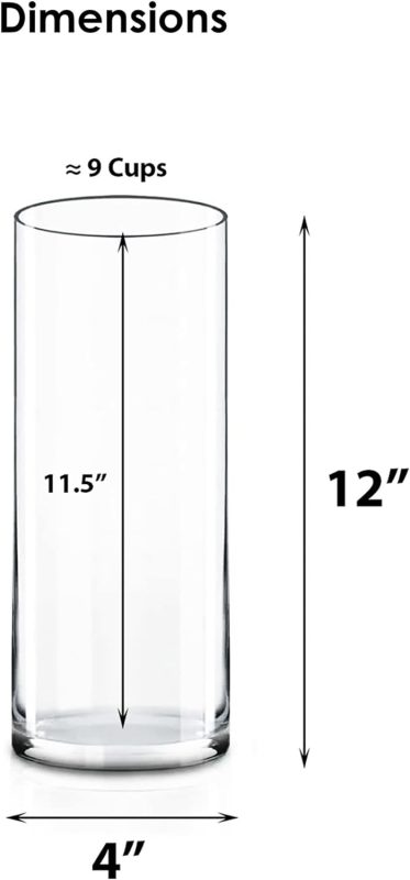 Clear Glass Cylinder Vase (H:12" D:4") | Multiple Size Choices Glass Flower Vase Centerpieces | Hurricane Floating Candle Holder Vase