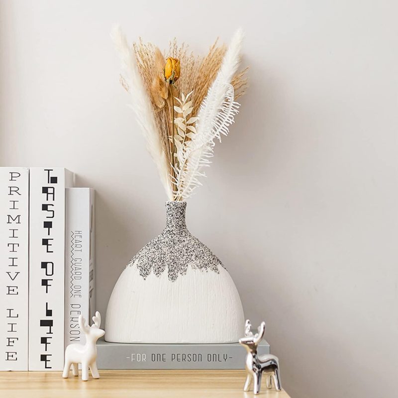 Ceramic Vase, Modern Unique Matte Decorative Flower Vase for Home Centerpieces Living Decor, Off White Minimalist Nordic Boho Vase for Flower Bouquet, Pampas Grass (Large)