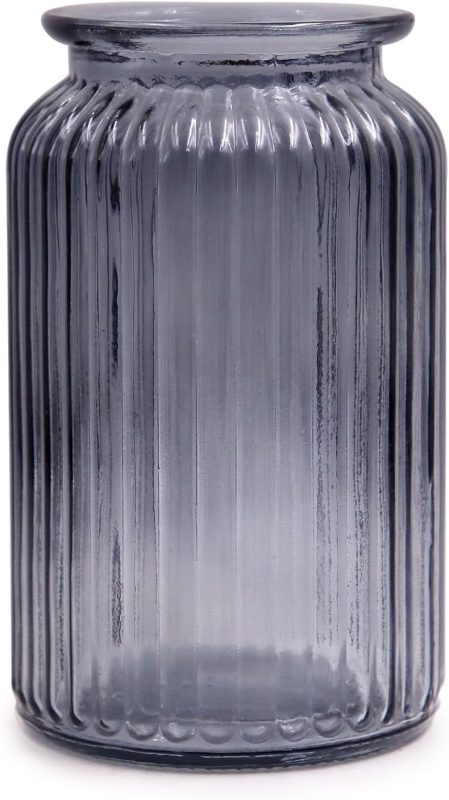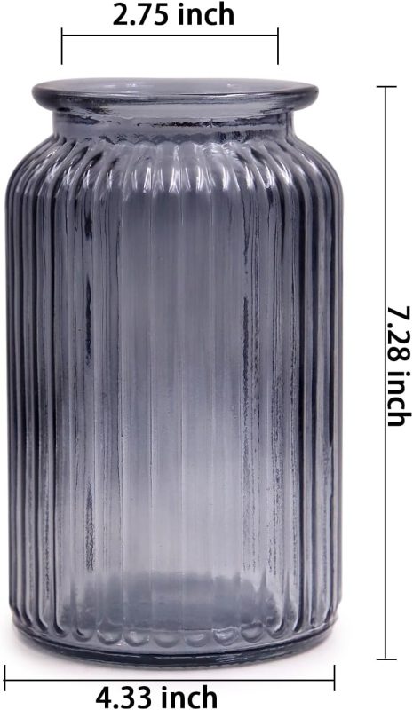 Clear Glass Vase, Flowers Vase for Centerpieces, 7.5 Inches Ribbed Large Vase for Flowers, Decorative Modern Crystal Glass Vase for Living Room Kitchen Office Wedding.