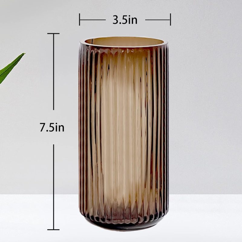 7.5" Flower Vase for Decor Ribbed Glass Vase Modern for Centerpieces Desktop Home Office Dining Living Room Wedding (Amber)