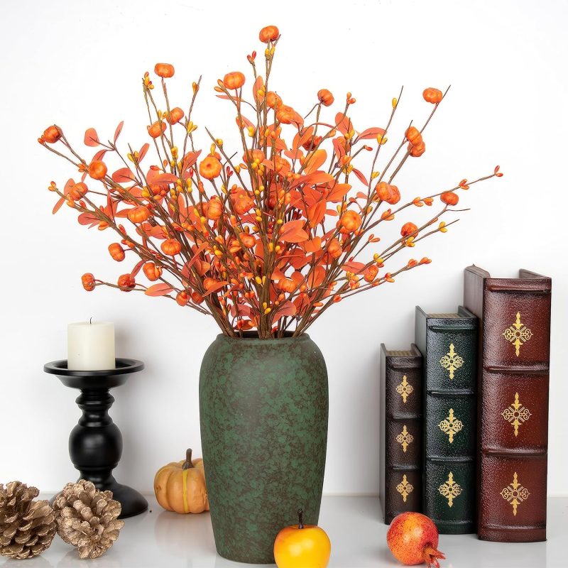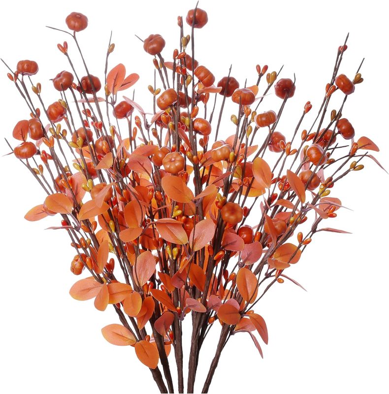 17 Inch Fall Stems 6 Pack Orange Pumpkin Picks Floral with Eucalyptus Leaves Berries Fall Picks and Sprays Thanksgiving Fall Branches for Vase