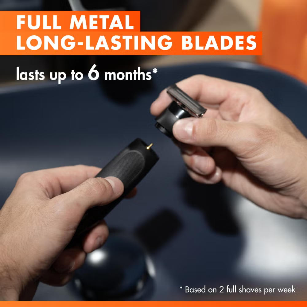 With durable full-metal blades, it delivers consistent high-performance results week after week, with one blade that lasts up to 6 months of regular use. Please note: The device should not be used while charging and contact with water should be avoided during charging to prevent damage or injury.