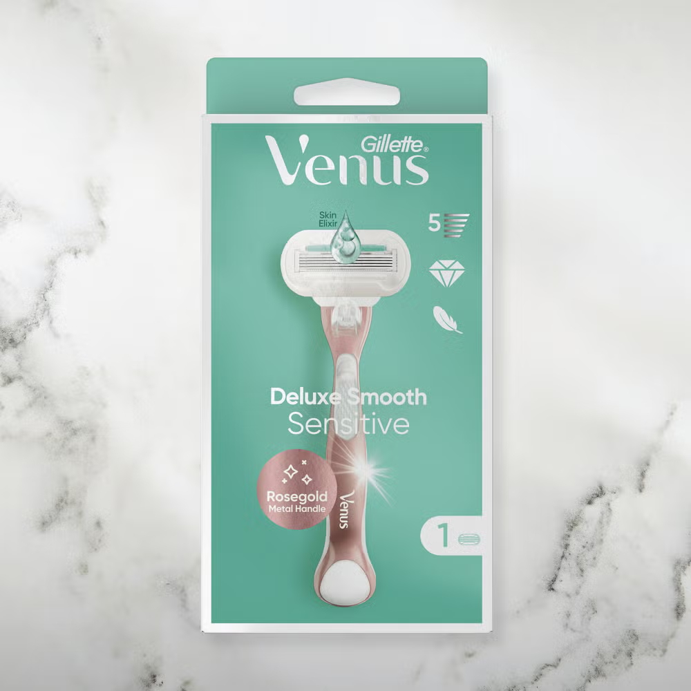 The Gillette Venus Deluxe Smooth Sensitive Rose Gold Razor is a nourishing way to enjoy a sleek shave for any skin type. Gillette Venus’ creation includes a Lubrastrip full of moisture to help the razor glide over even the most sensitive skin.
