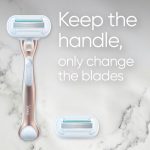 The razor arrives with three temporary refill cartridges and a rose gold handle for a long-lasting addition to every shower.
