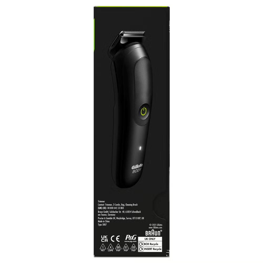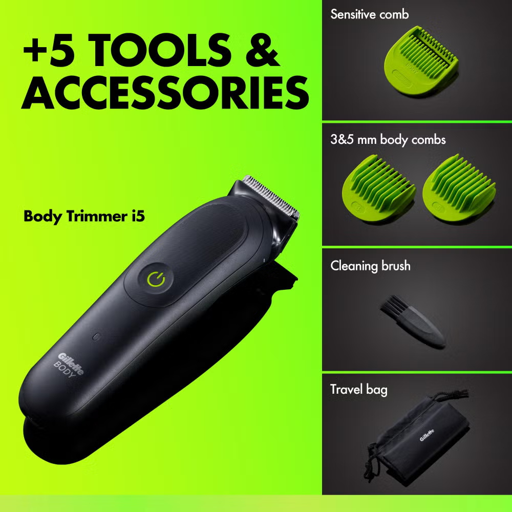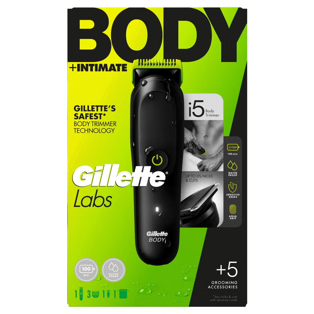 Part of the wider GilletteLabs Body + Intimate range, the GilletteLabs Body Pro Essentials is a men’s body grooming bundle which gives you the essential products you need for confident body and intimate grooming. It includes the GilletteLabs i5 Body + Intimate Hair Trimmer for Men for precise, controlled trimming (including sensitive areas with the sensitive comb), plus the GilletteLabs Body + Intimate 2‑in‑1 Shave Cream & Cleanser, a dermatologist-tested formula that cleanses and helps boost glide for less tug and pull* (*vs. water alone)-ideal for body and intimate areas. This GilletteLabs bundle covers the essentials for easy and comfortable body grooming.