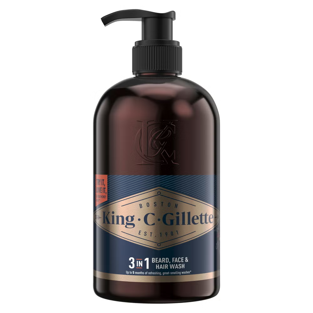 King C. Gillette Beard Care Kit with 3-in1 Beard, Face & Hair Wash
