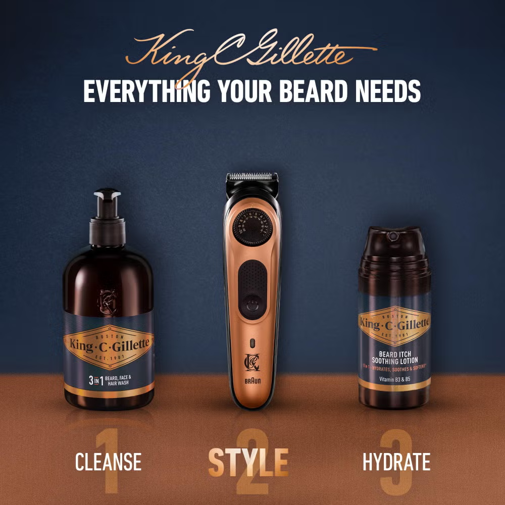 King C. Gillette Trimmer Pro with 4 combs to trim, edge, fade, and detail the beard.