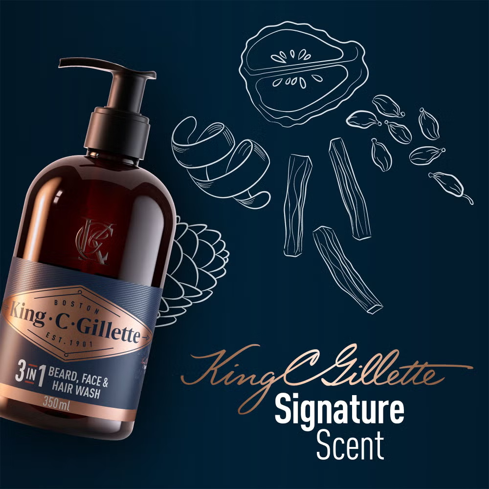 Our double edge safety razor is modelled on the original safety razor launched by King Camp Gillette in 1901, enhanced with modern shaving innovation. All of our beard care products feature the signature King C. Gillette modern masculine fragrance, featuring notes of sage, cardamom, ginger, cedarwood and sandalwood.
