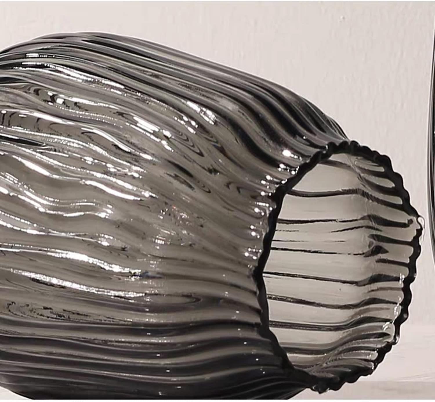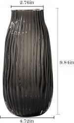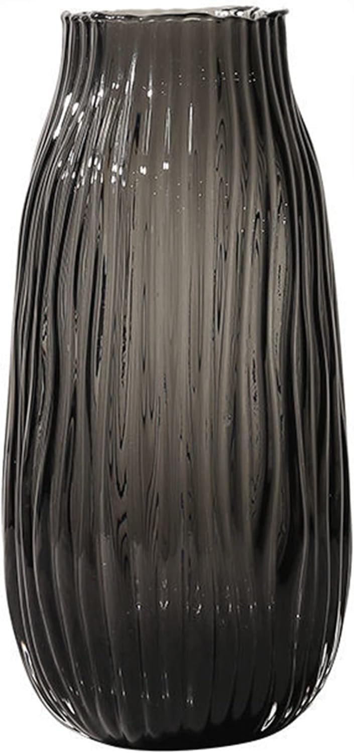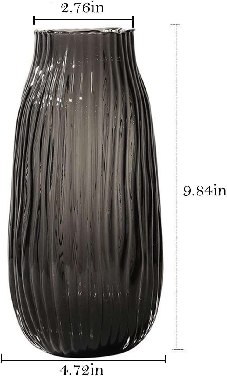 Home All products Black Grey Glass Vase for Flowers,Dark Grey Bud Tall Glass Vases,H-12.2" Simple Striped Design for Home Floor Decor,Farmhouse Decor, Centerpiece Coffee Table Decorations
