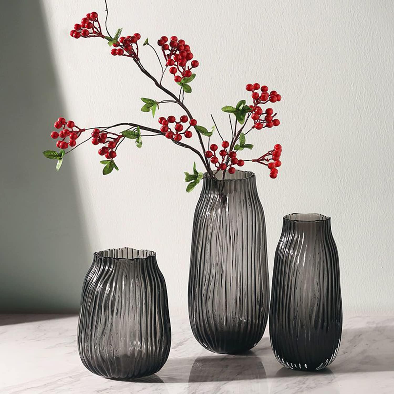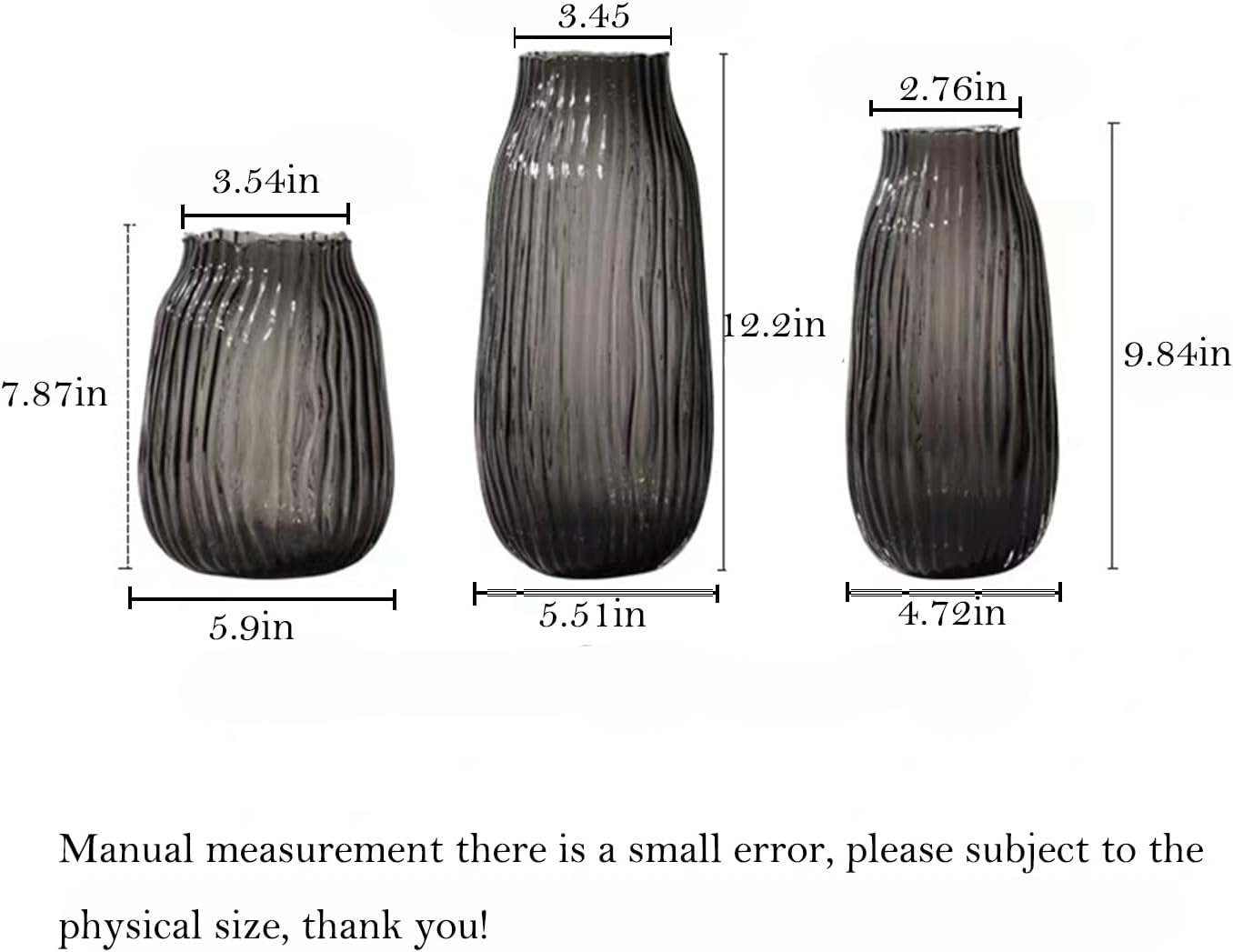 • 1 piece grey glass vase carefully packaged, vase filler not included,Each glass bottle is individually packaged, with a thickened buffer material added to ensure that it is not easily damaged during transportation.