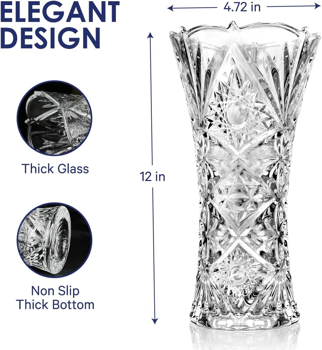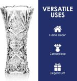 • Design and Shape: This 12 inch tall vase an elegant design. Engraved with gorgeous and brilliant Sunshine design; truly celebrating commitment and everlasting love. Crystal glass production, the vase is more glaring than general vase, particularly in reflecting light, the vase will be very bright. No sharp corners, bubbles and wrinkles on the glass, safe and beautiful. Easy to wash and shock resistant.