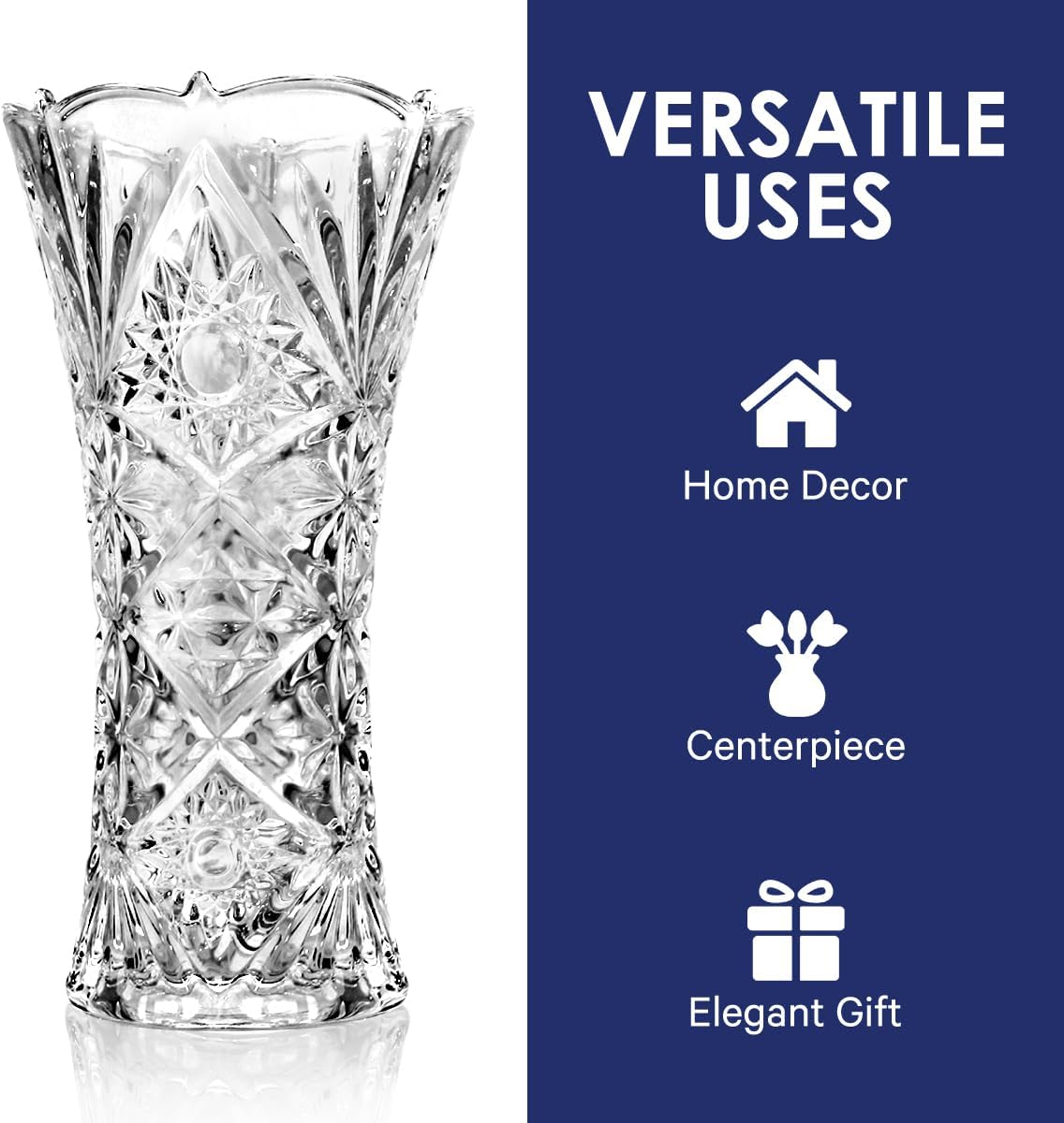 • Presentation Gift Box: The Vase is packed in a beautiful Gift box made out of strong wood, covered with stunning royal blue material engraved with gold lined in rich material, which gives it the best look for all gifts.