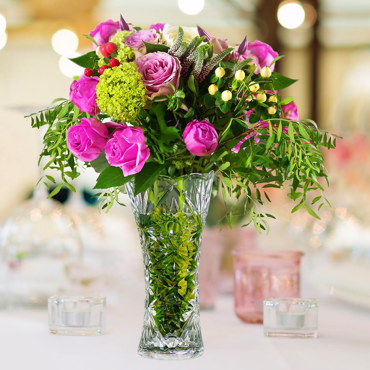 • High Quality Elegant Floral Vase: All sides and bottom of the vase is thickened design, compared with ordinary vase thicker and stronger, with brilliant high quality lead-free transparent crystal glass is of cabbage design, everlasting love, elegant and stable