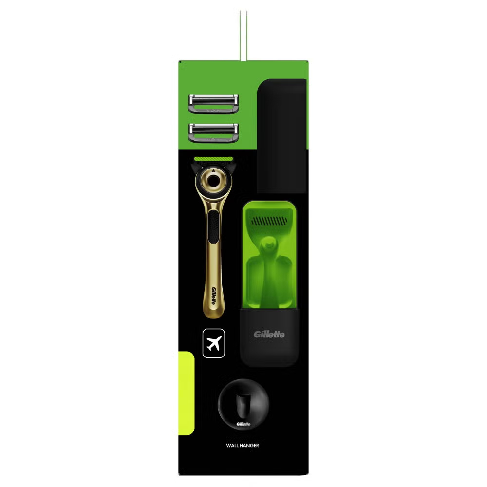 This Gillette Labs Champion Gold Edition Razor with 2 Razor Blades & Slimline Travel Case set is ideal for men on the go who want close and comfortable shaves that make them feel like a champ. This gold edition set looks good and functions even better with a pair of five-bladed cartridges that offer incredible shaving accuracy. Even better, the integrated exfoliation bar means your skin is cleared of dirt and grime as you shave, allowing the blades to perform optimally. With a slimline Gillette Labs travel case, you’ll have everything you need for a smooth, exfoliating shave wherever you are headed.