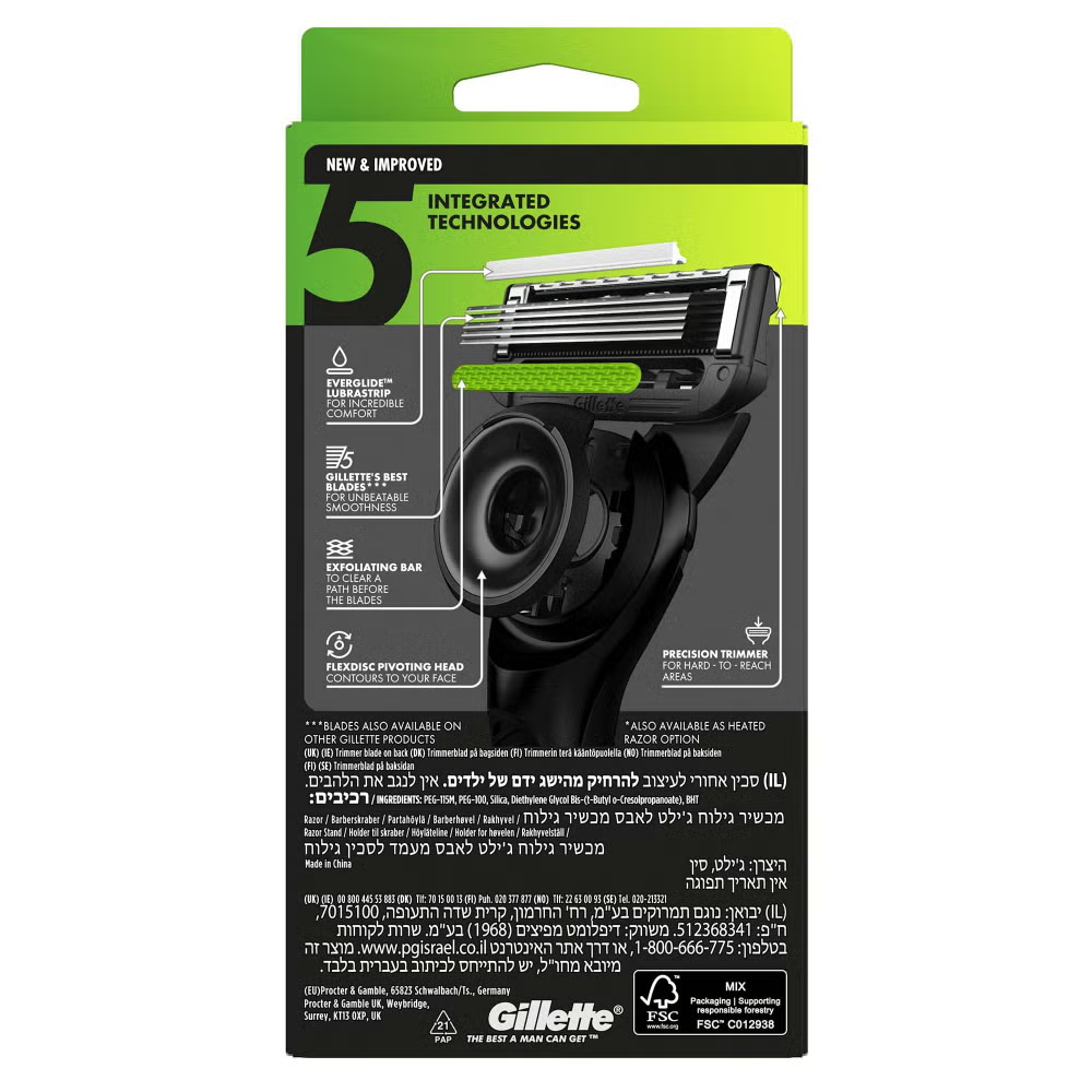(Exfoliating Bar) (2D FlexDisc Technology) (Closeness) (Precicion Razor) (Lubrication) (Magnetic Stand)