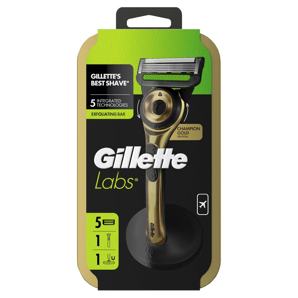 Gillette Labs Champion Gold Edition Razor with 5 Razor Blades & Slimline Travel Case