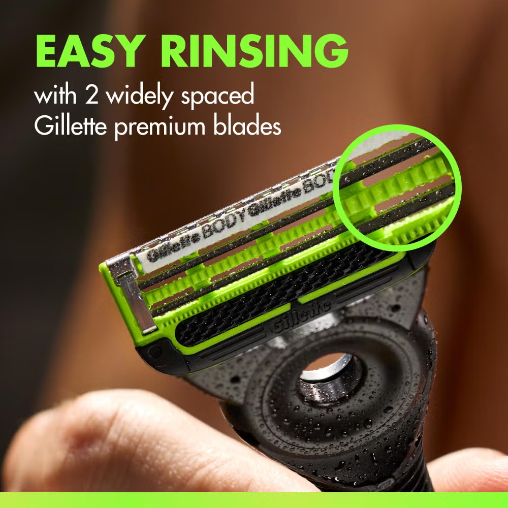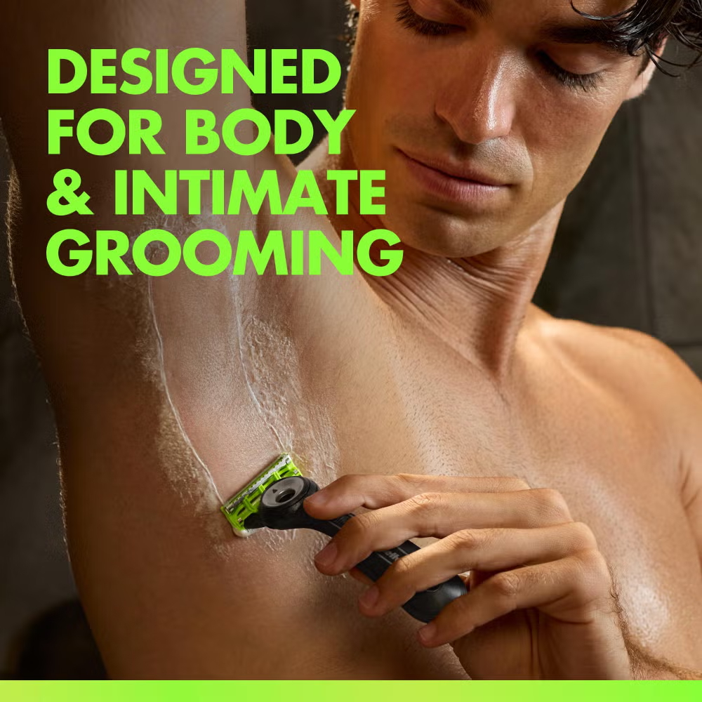 Elevate your body grooming experience with GilletteLabs Body + Intimate Razor Blade Refill Cartridges, designed for GilletteLabs’ safest* body shave. Each refill is engineered with our innovative Triple Defence System, featuring a long-lasting lubrastrip for a smooth glide, an anti-ingrown bar to help prevent ingrowns, and an anti-irritation bar to help release trapped hairs. This comprehensive system helps protect against regrowth itch and shave irritation, ensuring a comfortable and smooth body shave every time. Gillette’s long-lasting premium blades are precisely crafted and widely spaced for easy rinsing, preventing clogging and maintaining hygiene. The precision trimmer allows optimal reach even in tricky areas. These refill cartridges are designed to work with your GilletteLabs Body + Intimate Razor. Give your body grooming routine the attention it deserves with the purposefully designed GilletteLabs Body + Intimate Razor Cartridges. (*less nicks and cuts)