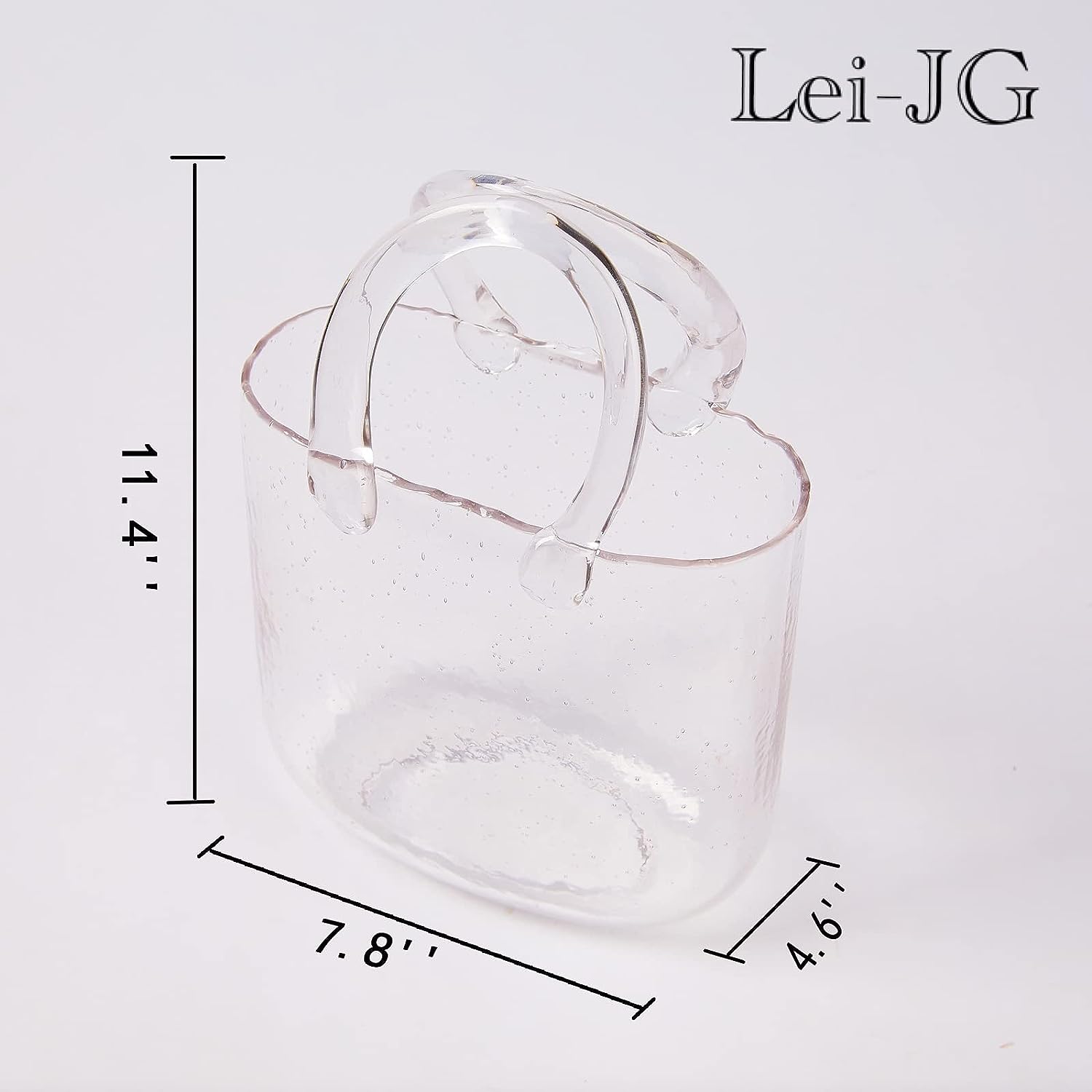 Purse vase for Flowers (Handmade) Clear Glass Bag vase -10Inches- Clear, Cool & Cute vase for centerpieces & Fish Bowl - Handbag Unique Flower vase Decorative - Wide Mouth Bubble vase for décor $29.98