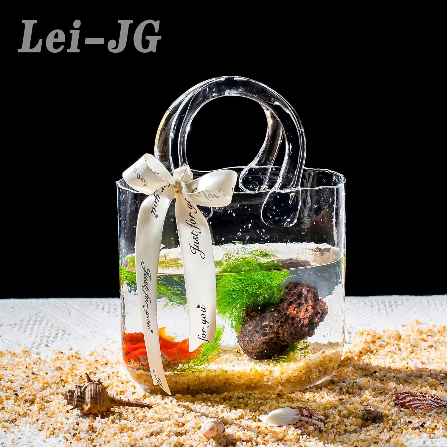 Glass Bag vase, Purse vase with Fish Bowl, Handbag Shape Flower vase – for Home Décor, enterpiece, Events, Office, Garden, Wedding (Transparent)